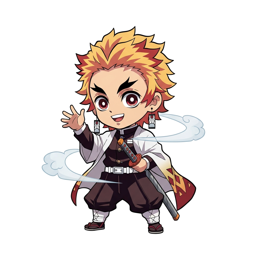 "A super cute chibi Muichiro Tokito from Demon Slayer, with soft mist swirling around him, in a playful and friendly pose, vibrant colors, cartoon style, isolated character illustration."