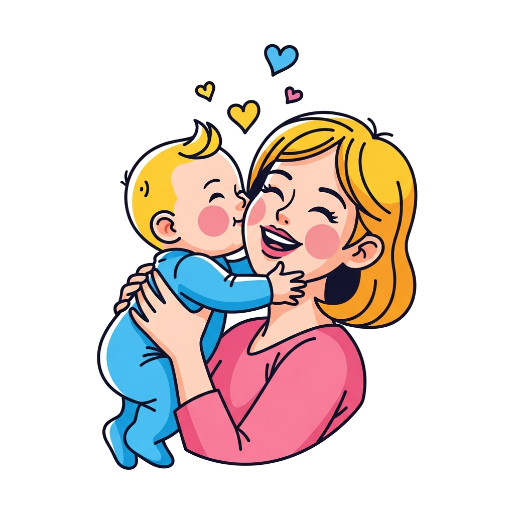 "baby boy is hugging and kissing his mother "