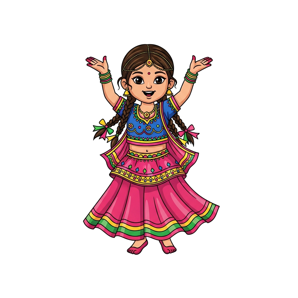 "Little girl in traditional Navratri chaniya choli dancing"