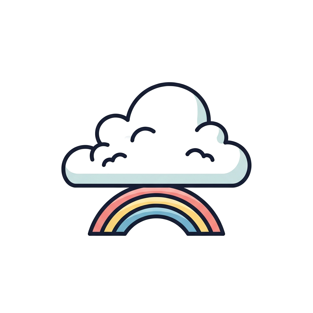 "A single, friendly cloud with a small, understated rainbow emerging from its side, clean graphic style, modern and serene, soft pastel tones."
